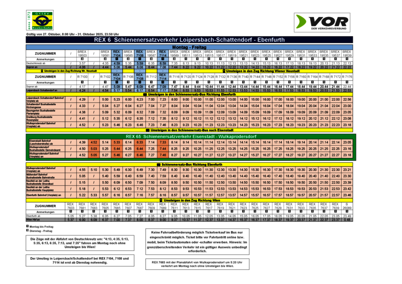 Zwischen Loipersbach- Schattendorf und Sopron fährt die Linie R93. Fahrgäste nach Deutschkreutz steigen in Sopron in den REX6 um.